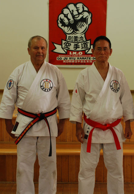 Shihan Andrew Roubas (left) with Soshihan Gonnohyoe Yamamoto